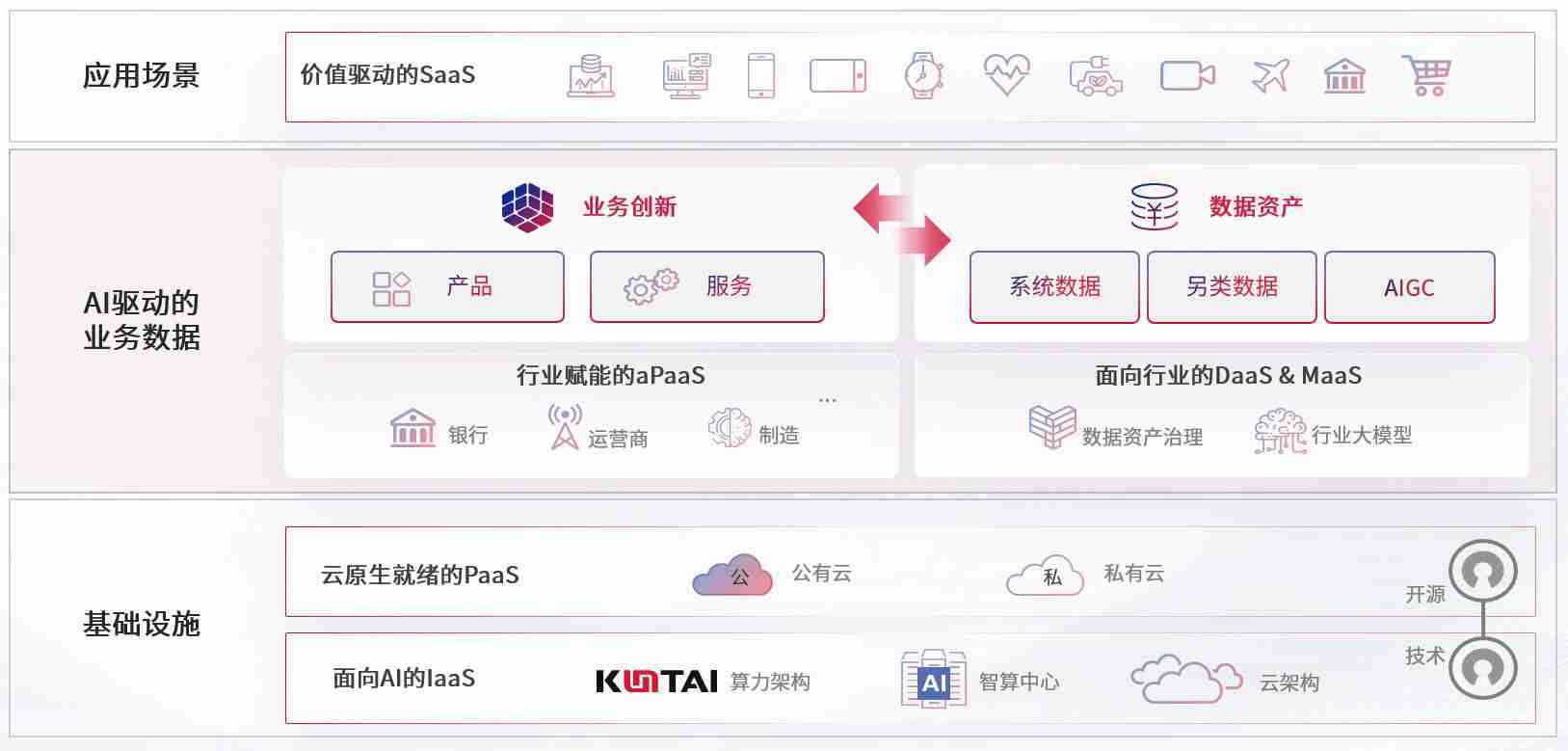 数字时代,,围绕企业数字化转型的关键要素,,365钱包数码开创性的提出数云融合战略和技术体系框架,,,着力在云原生、、、、数字原生、、AI原生和信创产业上架构产品和服务能力,,,,为处在不同数字化转型阶段的快消零售、、、、汽车、、、、金融、、医疗、、、政企、、教育、、运营商等行业客户提供泛在的敏捷IT能力和融合的数据驱动能力,,构建跨界融合创新的数字业务场景和新业务模式,,,,助力企业级客户建立面向未来的核心能力和竞争优势,,全面推动社会的数字化、、、智能化转型升级。。。。